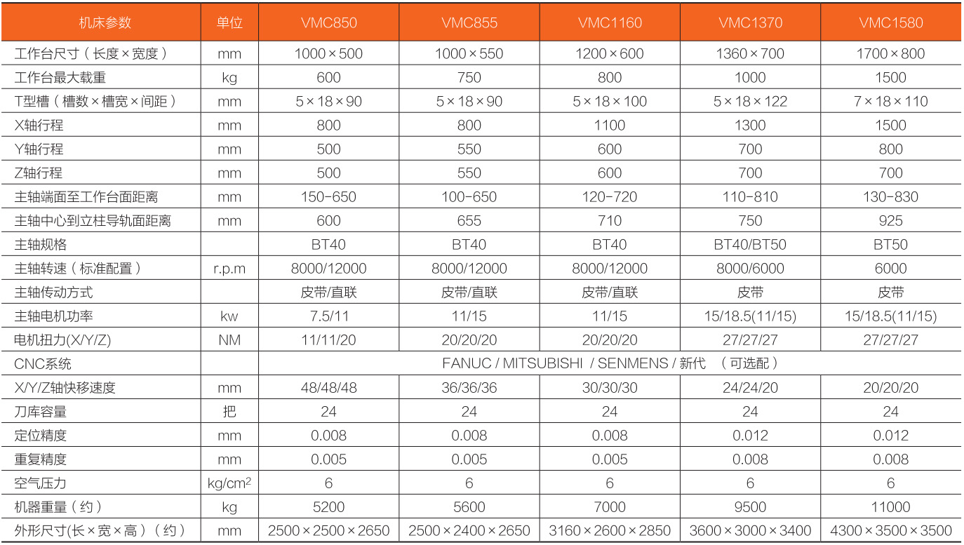 VMC-1370/1580 立式加工中心(三線)